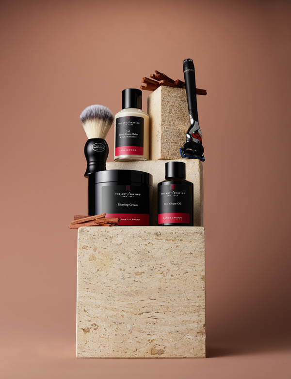 Straight razor shave on the cheeks & neck leaving a tidy moustache or goatee.
