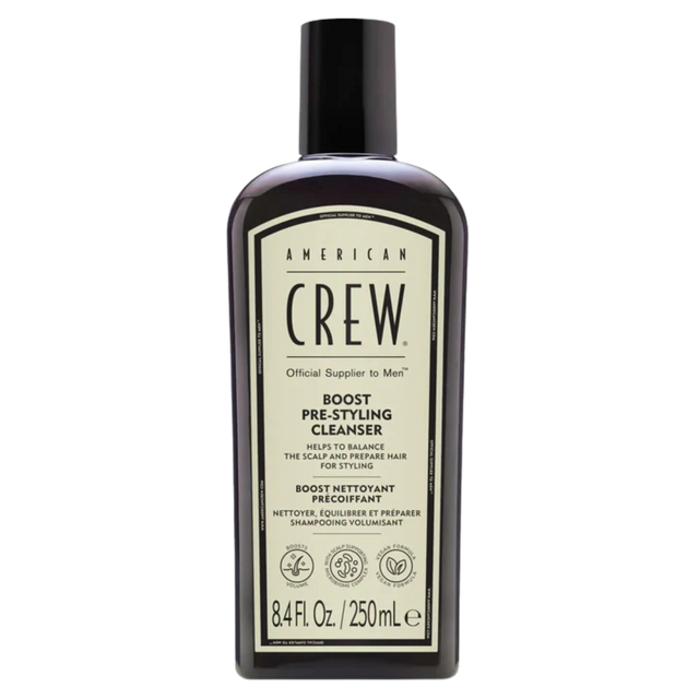 The American Crew Boost Pre-Styler Shampoo is a powerful solution for men seeking added volume and lift for fine or thinning hair. Its advanced formula cleanses while creating the appearance of thicker, fuller hair from root to tip. Infused with lightweight hydrators, it nourishes without buildup, balances the scalp’s microbiome, and prepares hair for effortless styling.
