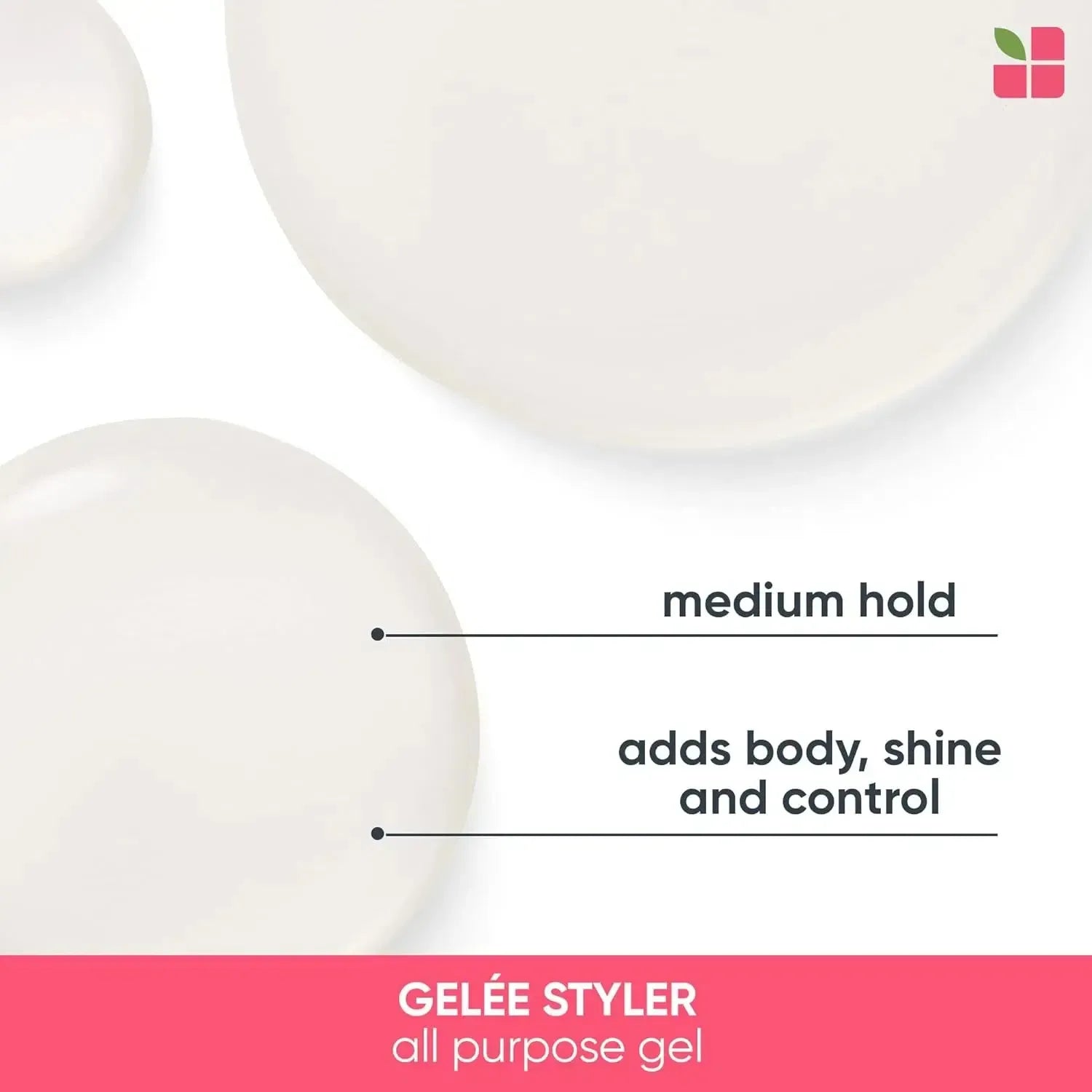 Achieve the perfect style with Biolage Styling Gelée Styler. Formulated with Blue Agave Core to strengthen and repair damaged hair in harsh conditions by retaining moisture and nourishment. Create and hold shape without crunchiness or residue with this all-purpose gel, while adding volume, enhancing shine and smoothing hair for polished, perfect styles.