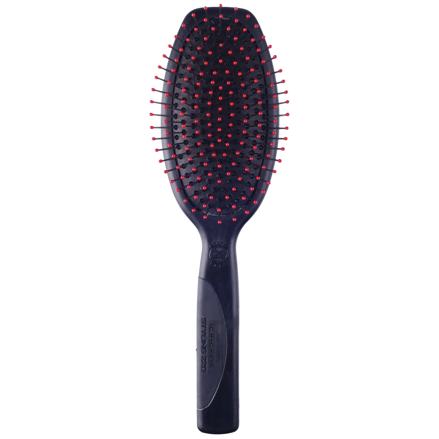 No longer struggle to tame thick or curly hair with Cricket's Static Free Styling 220 Brush. Equipped with nylon bristles, to detangle thick and curly hair, style with ease, and a cushioned pad to prevent hair breakage. This product eliminates pesky, fly-away hairs and has reinforced "stay-put" ball tips and non-slip grips for maximum styling control and comfort.
