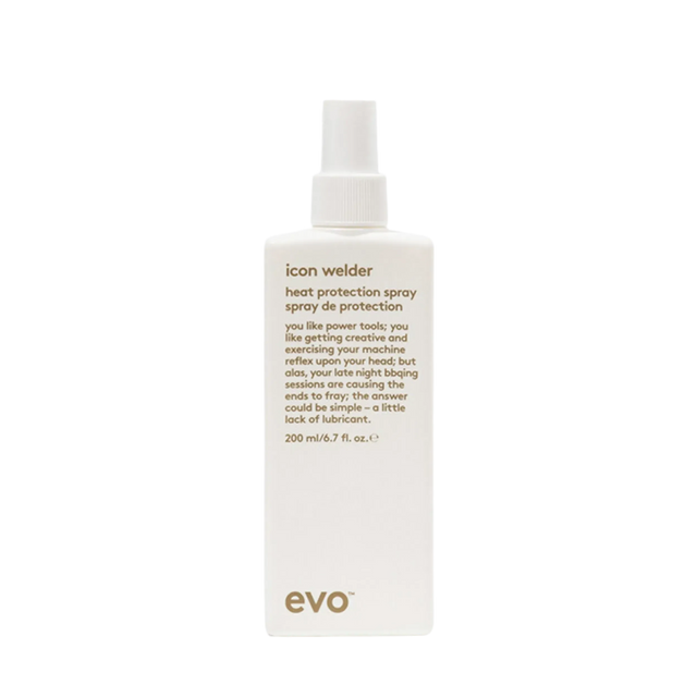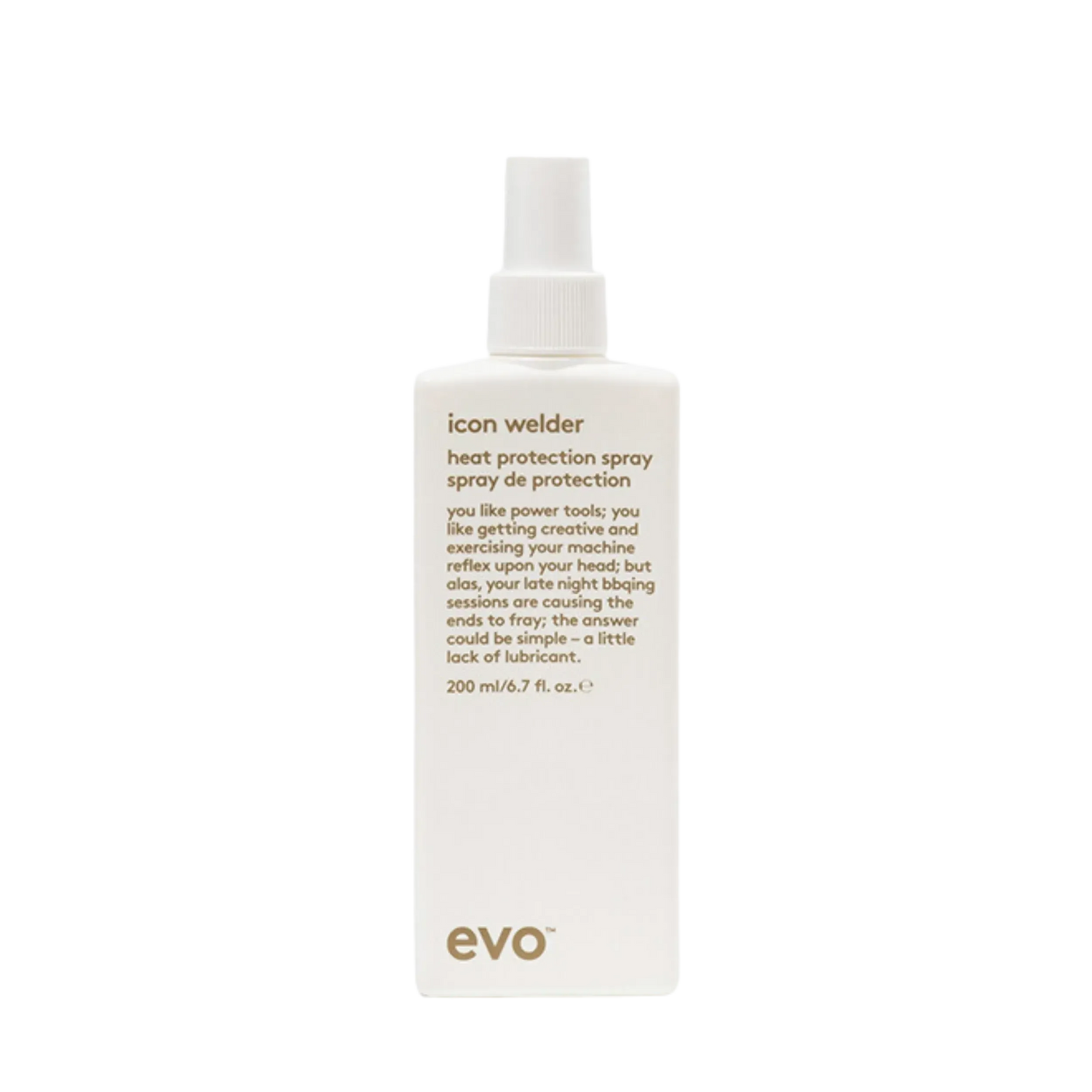 EVO Icon Welder Heat Protection Spray shields against heat and UV damage while offering style control with a touchable finish. It delivers thermal protection up to 430°F, ideal for use before hot tools. Enhancing combability and improving hair’s condition, it adds softness and shine. Blend with any EVO styling product to boost hold while keeping an invisible finish, suitable for all hair types.