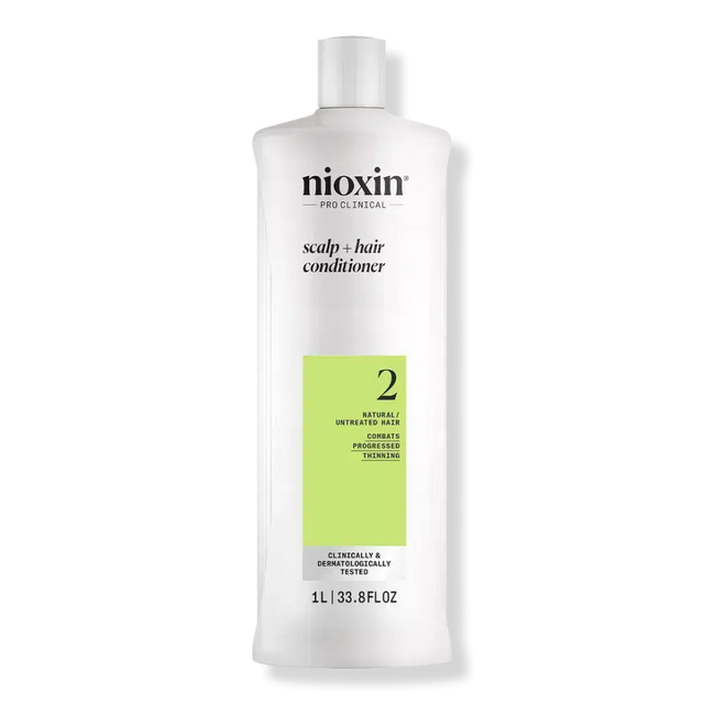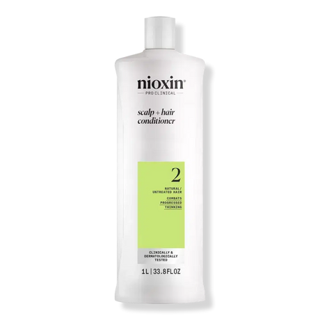 The Nioxin System 2 Scalp + Hair Conditioner is for those wanting to thicken natural hair with progressed thinning. This lightweight conditioner hydrates the hair and scalp while strengthening hair against breakage for thicker, fuller-looking hair. Formulated with Peppermint Oil and Wild Mint Oil, this conditioner is refreshing and invigorating, stimulating the scalp and promoting hair growth. Caffeine stimulates hair follicles and improves circulation while Niacinamide nourishes the hair root for improved scalp health and growth,