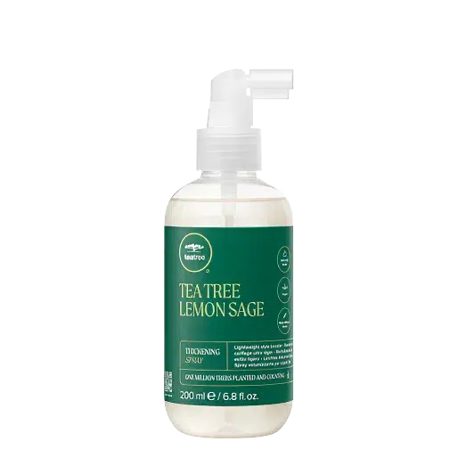 Paul Mitchell's Tea Tree Lemon Sage Thickening Spray® contains a cocktail of lightweight thickening ingredients that plump up skinny strands while flexible, high-performance styling agents grip fine hair for added control. This volumizing spray leaves you with a clean, no-product feeling for natural-looking hair that is fuller and thicker-looking.