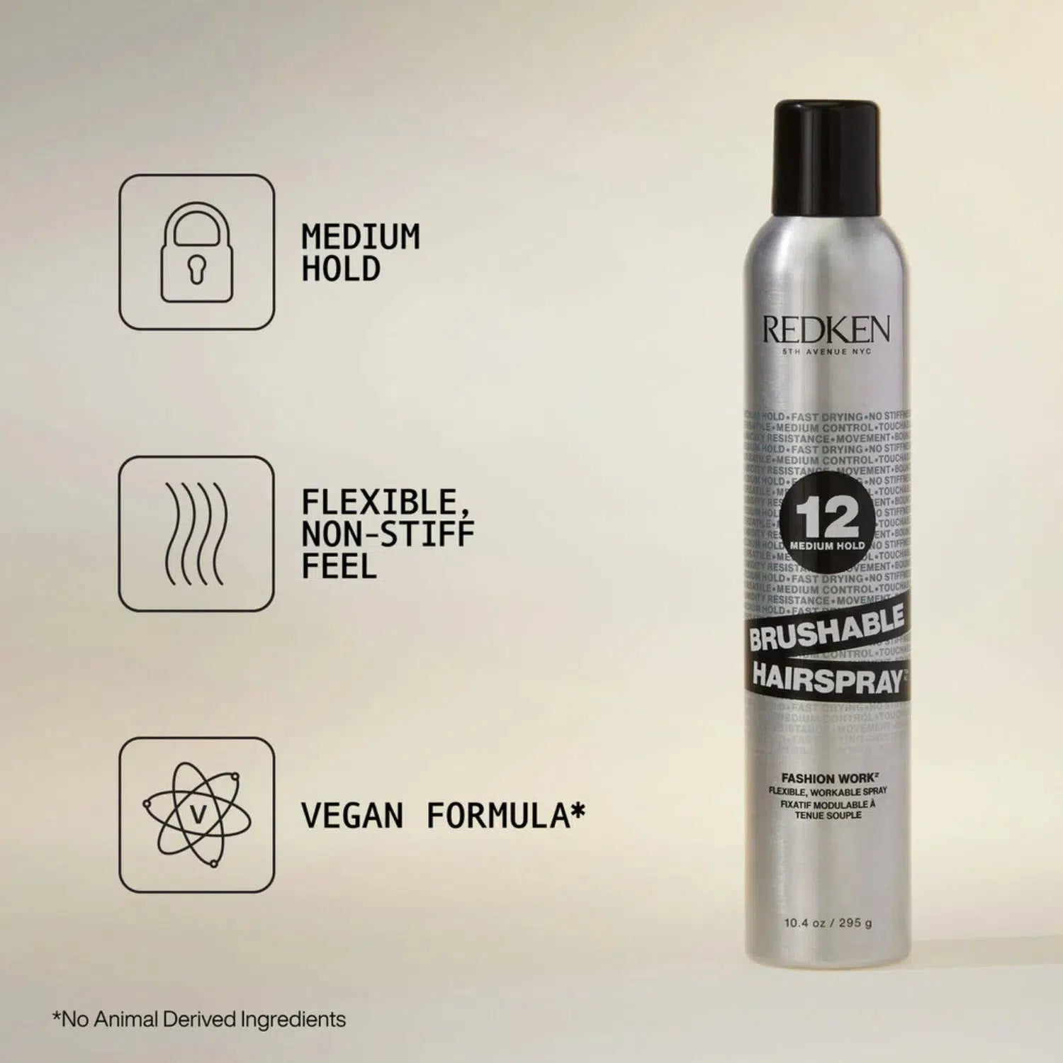Redken's Brushable Hairspray is a medium control hairspray specifically formulated for working, shaping, and finishing styles on colour-treated hair. This texturizing hair spray is enriched with Vitamin C and Vitamin E to protect colour vibrancy and prevent colour-fade. This award-winning, anti-frizz and anti-humidity hair spray has an ultra-fine, fast drying formula so that nothing gets in the way of your unique style.