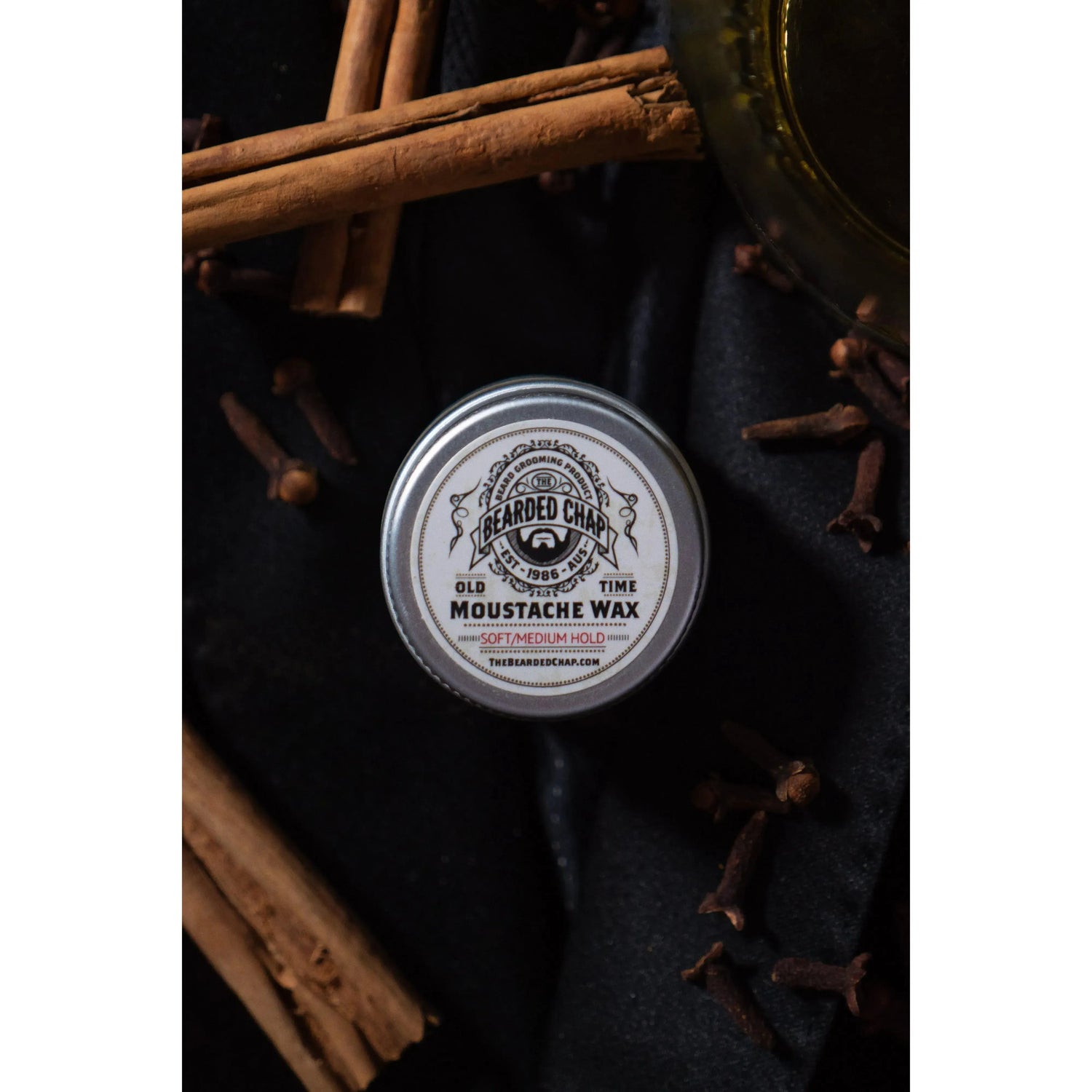 The Bearded Chap Old Time Moustache Wax is for those wanting to style their moustache. This ultimate styling wax is hard to touch at first but once emulsified it turns into an easy-to-use tacky with a natural-looking finish and a soft to medium hold. The Old Time Moustache wax not only makes your moustache look great but smell great too with its handsome Caribean Bay Rum scent!